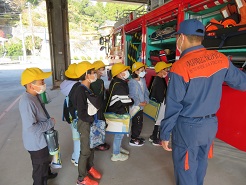 12月2日(火)、3年校外学習で上野小と合同で勝浦消防署と勝浦警察署に社会科見学に行きました。消防署では、署員の方に、質問に丁寧に答えていただいた後に、署内の見学を行いました。また、消防車や救急車の見学や消防訓練の実演など、子どもたちは目を輝かせながら見学しました。警察署では、警察の仕事を学んだ後、署内の見学をしたり、パトカーや白バイに乗車したりと普段できない体験をすることができました。私たちが安心して生活できるように日々頑張ってくださっている消防や警察の仕事について理解することができ、充実した学習になりました。