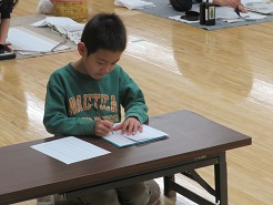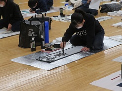 1月17日(土)、第68回市内小中学校書初展席書大会が日本武道館研修センターで行われました。各学校から代表の児童生徒が参加し、凜としたほどよい緊張感の中、子どもたちは真剣に取り組み素晴らしい作品を書き上げました。保護者の皆様、早朝よりご協力ありがとうございました。