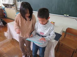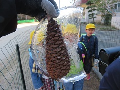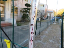 1月23日(金)朝の気温はなんと零下1℃になり、とても寒い日になりました。子どもたちは、寒い中登校してくると、1年生が生活科で実験している、容器の中の水が凍っているのを見つけ、目を輝かせながら氷をさわり楽しんでいました。