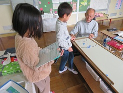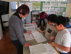 1月20日(火)2校時、1年算数で「大きな数」の学習を行いました。おはじきを使ったゲームで点数を計算しながら数を覚えます。楽しみながら学習しています。