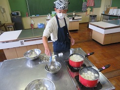 1月20日(火)5,6校時、5年家庭科で白玉だんごの調理実習を行いました。時間をかけてひとつひとつ丁寧に白玉だんごを練り上げて、上手に調理することができました。できた白玉だんごは、おいしいお茶と一緒にみんなでおいしくいただきました。