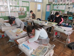 2月9日(月)、3校時、3,4年図工「閉校に向けた思い出の絵画」、6年音楽「卒業に向けた合唱練習」、6校時「クラブ活動」プラ板工作です。子どもたちは閉校や卒業に向けた活動に一生懸命に取り組んでいます。