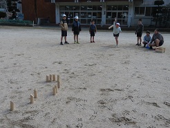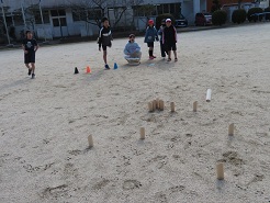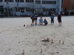 2月13日(金)、全校遊びで「モルック」を行いました。学年を超えて協力しながらみんな笑顔で楽しみました。子どもたちは寒さを吹き飛ばして遊んでいます。