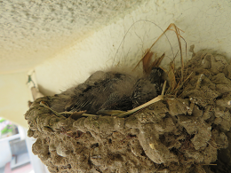 ツバメの卵が孵化してかわいい雛が生まれていました。また、観察池には、連日カエルの声が鳴り響き、なんと、タイサンボクの木の上にモリアオガエルの卵が産みつけられました。