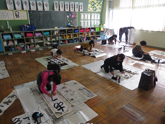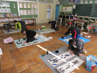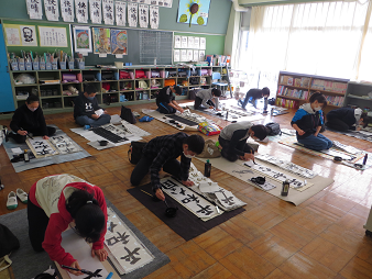 1月8日(金)に校内席書会を行いました。子どもたちは、緊張感をもちながら、真剣に作品を仕上げました。どの作品も気持ちのこもった素晴らしいものになりました。