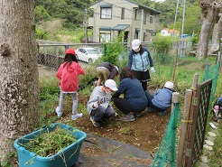 4月18日(月)に3,4年生の総合的な学習の時間「農業体験をしよう」の学習が始まりました。畑の準備として,全員で草取りを行いました。おいしい作物を育てるために一生懸命に草を取りました。