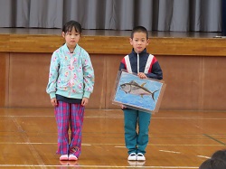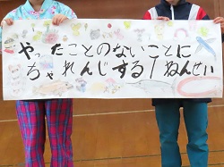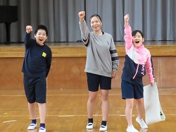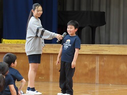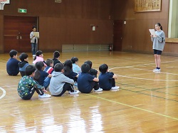 5月2日(金)本日予定していた全校遠足は、あいにくの雨のため、体育館に変更して実施しました。お昼では、なかよし班ごとに分かれ、おうちの人が用意してくださったお弁当や好きなお菓子を紹介しながら楽しく輪になって食べました。保護者の皆様、朝のお忙しい時間帯からのご準備ありがとうございました。昼食後、まず初めに入学進級を祝う会を行い、今年度入学した可愛い1年生2人が特技を披露しました。その後、年度末に向けてどんな学年になりたいか、各学年で立てた目標を発表しました。どの学年も挑戦心や思いやりの心が感じられる素晴らしい目標でした。目標発表後には、6年生から、興津小最後の1年に向けた気合の掛け声が入り、興津小全員の絆がさらに深まりました。その後のレクでは、計画・JRC委員会の児童が中心となって活動しました。興津小に関する〇✕ゲームやなぞなぞ、じゃんけん列車など、職員も参加し、笑顔溢れる時間となりました。