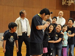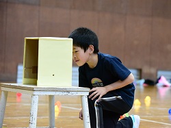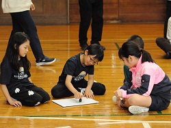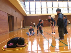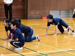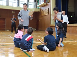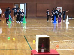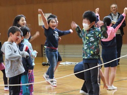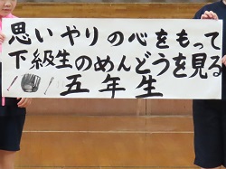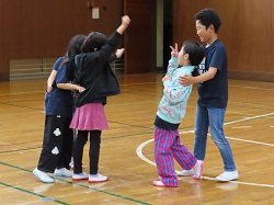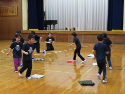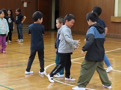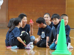 入学進級を祝う会が終わると、仲良し班に分かれた活動に移りました。5・6年生が中心となり、低学年から楽しめる工夫した遊びを行いました。少し肌寒いくらいの気候でしたが、子どもたちは半袖になって大汗をかき、全力で楽しみました。