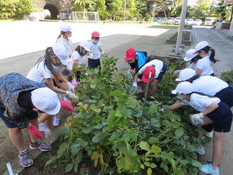 10月29日(木)に3,4年生の総合学習で、落花生と枝豆の収穫を行いました。育て方などを自分たちで調べ、6月から大切に育ててきたた作物を見事収穫することができました。子どもたちは満面の笑みで楽しみながら収穫しました。