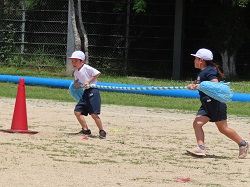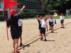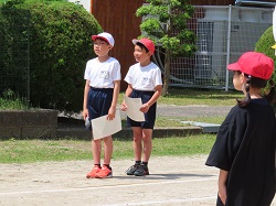 5月20日(火)本日の運動会練習は、2校時に開閉会式とエールの交換、3校時に台風の目と綱引きの練習を行いました。今年度は開閉会式の司会進行を保健・体育委員会ではなく、3年生が努めます。すでに高学年のような立ち振る舞いでとても頼もしいです。開式の言葉では、可愛い1年生2名が緊張しながらも元気いっぱい大きな声で頑張っています。そして運動会の目玉でもある、台風の目と綱引きの練習では、子どもたちもさらに気合が入り、本番さながらの盛り上がりでした。
