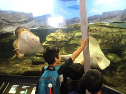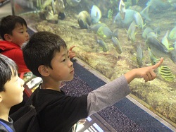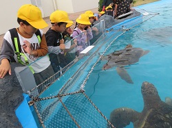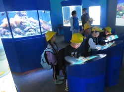 令和5年11月7日(火)1・2年生が校外学習で鴨川シーワールドに行ってきました。朝は雨風が強く天候が心配されましたが、室内の見学がほとんどだったため、楽しく過ごすことが出来ました。子供たちは、イルカなどのショーや、マンボウやベルーガなどの魚を間近で見ることが出来、その大きさと迫力にとても驚いていました。