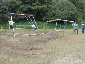 10月25日(月)に新しい遊具が完成しました。子どもたちが待ちに待ったブランコと雲梯、久しぶりの2種類の遊具に、子どもたちは大喜びでした。設置ありがとうございました。