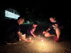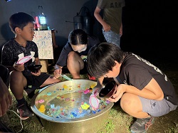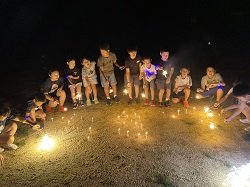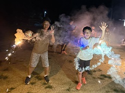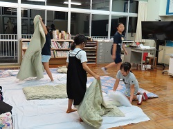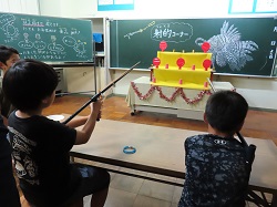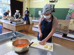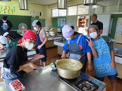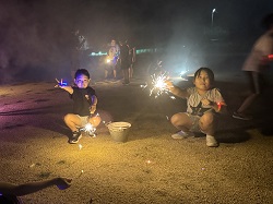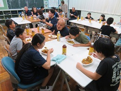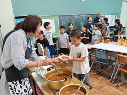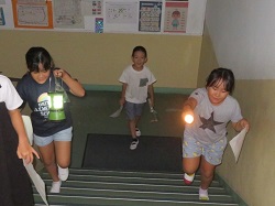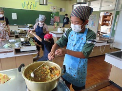 9月19日(金)~9月20日(土)にかけて、統合前の思い出作りや地域や学校への愛着を深めることを目的とし、学校宿泊体験を行いました。1日目は、5・6年生のカレー作りからスタートしました。全校児童と職員分の約30人分の食材を切ったり、鍋をかき混ぜたりと、それぞれが役割を担いながら一生懸命協力して完成させました。子どもたちが作ったカレーは格別で、大きな食卓を囲みながらおいしくいただき、あっという間に鍋は空っぽになりました。夕食の後は、3班に分かれ、ドキドキワクワクの夜の学校探検(校内スタンプラリー)へ。真っ暗な校舎をライトで照らしながら、各チェックポイントへ向かいました。各担当職員が考えた、スーパーボールすくいやだるま落とし、射的、輪投げなど、縁日のような楽しい遊びが盛りだくさんで、子どもたちは大喜びでした。探検の後は、グラウンドに集まり花火を行いました。手持ち花火を中心に、色とりどりの火花が夜空にきらめきました。夏の終わりに相応しい素敵な思い出が出来ました。最後は、男女別に階を分け、それぞれの部屋で楽しく過ごした後就寝しました。
