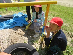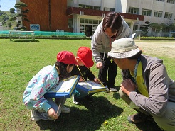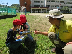 4月30日(水)2校時、千葉県立中央博物館分館 海の博物館から松本先生を講師としてお招きし、1年生活科の授業で春の植物探しを行いました。快晴の気持ちの良い天候の中、子どもたちは松本先生が作成した「くさ草ハンター」の植物探しシートを見ながら、小さな植物を探しました。「せいようたんぽぽ」や「しろつめくさ」など普段目にしやすい植物から、「きゅうりぐさ」や「やぶがらし」などなじみのない植物まで五感を使って自然観察を楽しみました。子どもたちは、小さい植物にも名前があることや、植物には違いや特徴があることを楽しみながら学ぶことができました。松本先生、ありがとうございました。