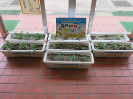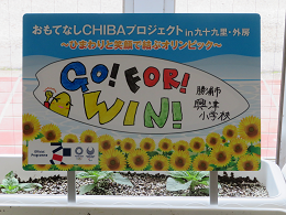 オリンピックおもてなしCHIBAプロジェクトの取組で、学校でプランターにヒマワリを植えて育て、会場周辺の沿道に設置する予定です。掲示用の看板は、6年生で作成しました。カラフルな看板が掲示されることを楽しみにしています。