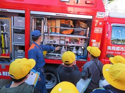 11月2日(水)に4年生の校外学習を実施しました。初めに夷隅郡市広域市町村圏事務組合 勝浦消防署を見学しました。通信室や仮眠室などの部屋を見学後、実際に火災が起こった時に着用する「防火衣」や「防火帽」を着る体験や,救急車や消防車の見学を行いました。子どもたちは、人を助けるためには、様々な設備などが必要であることを学びました。次に勝浦市清掃センターを見学しました。粗大ごみや空カン・ガラスなど家庭や学校で出るゴミとは比べられないほどの量に子どもたちは大変驚いていました。