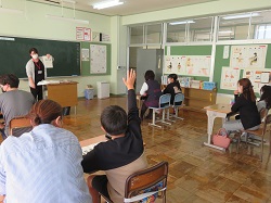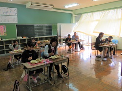 11月10日(木)4年生を対象に食育教室・親子給食を実施しました。昨日の小児生活習慣病予防検診に合わせ、本日は「生活習慣病の予防」について紫関栄養士より学びました。ポテトチップスやカップ麺、コーラに含まれる塩分・糖分の量のクイズでは、その量の多さに、子どもたちだけでなく保護者の方も大変驚かれていました。最後に、生活習慣病にならないための目標を、一人一人が自分の生活を振り返って立てることができました。