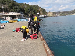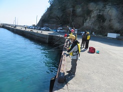 3月3日(木)に5,6年生で興津港への校外学習に行き,つり教室を行いました。晴れ渡った気持ちの良い天気の中,釣りを楽しみました。子どもたちは、とても楽しそうでした。