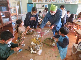 12月17日(金)に鈴木栄先生を講師にお招きして、1~4年生がリースづくりを行いました。鈴木先生にわかりやすく温かいご指導をいただき、用意していただいた自然物を使い楽しみながら作りました。子どもたちは、創造力豊かな個性あふれる作品を仕上げることができました。