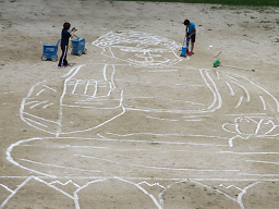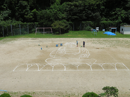 7月19日(月)に6年社会科の授業で、奈良の大仏を実物大でグラウンドにかいてみました。設計図をもとに、6年生のチームワークで見事に完成させることができました。