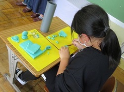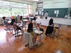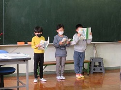 4月28日(木)授業参観・PTA総会・学級懇談会を行いました。保護者の皆様,ご参観ありがとうございました。授業参観では,1・2年生は学校探検の発表,名刺交換,「ふきのとう」の音読発表を行いました。3・4年生は,こねたり伸ばしたり,様々な形の粘土を作りました。5年生は,漢字の由来や漢字の成り立ちを学びました。6年生はとても美味しそうなスクランブルエッグを作りました。