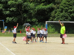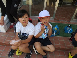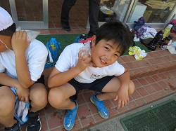 また,練習の合間に酒井さんのおじい様から頂いた氷で身体を冷やしました。子どもたちは首や額に当て「冷たい~!」「気持ちい~!」と,とても喜んでいました。酒井さんありがとうございました。
