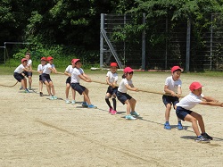 5月24日(火)今日は昨日の練習の復習に加え,エール交換,リレー,台風の目,綱引きの練習を行いました。雲一つない青空の下,子どもたちの元気な声が響き渡り,どの競技も本番さながらに赤・白が勝利を目指して一生懸命行いました。