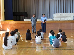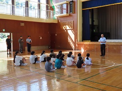 9月25日(木)の2校時に不審者対応避難訓練を実施しました。今回は、5・6年生の教室に不審者が入ってきたという想定で訓練を行い、児童は各担任の指示をしっかりと聞き、速やかに職員室に避難することができました。訓練の後、体育館へ移動し勝浦警察署の方からお話を頂きました。今回教わった不審者対応の4つの約束①自分の命は自分で守る②元気よく挨拶をする③先生にすぐ知らせる④先生の指示を聞くの4つを忘れずに覚えていてもらいたいと思います。特に④の先生の指示を聞くことは、普段の学校生活から意識できていなければ、緊急時にも行動できないため、改めて大切さを学ぶ機会となりました。