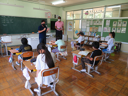 7月12日(月)外国語の授業を教えていただいている、ALTのアレックス先生が今日で最終になります。今までお世話になった気持ちを込めて、子どもたちとの記念写真を撮り、お手紙を贈りました。アレックス先生、今までありがとうございました。