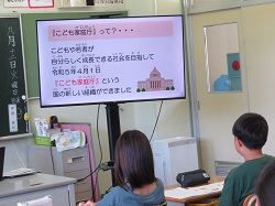 令和5年9月12日(火)の4校時、5・6年生対象に勝浦市役所の方を講師に、「こどもが未来をひらく~みんなで考えよう暮らしのこと~」をテーマに、出前講座を行っていただきました。勝浦市の人口やこども家庭庁、こども基本法について詳しく教えていただき、その後、自分たちの住む勝浦をもっとよりよくするため、現在使われていない公共施設の今後の使用方法について考えました。