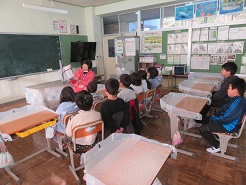 1月16日(金)にお話スキップの方による読み聞かせを行いました。1,3,4年生は「ゆらゆらばしのうえで」、5,6年生は「どうぶつのことば」の絵本の読み聞かせです。朝から落ち着いて話を聞くことができ、朝のよいスタートが切れました。