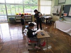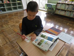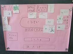 5月9日(金)2校時、1年生活科で生き物マップづくりを行いました。今まで生き物観察をして見つけた植物や動物を絵に描いて、マップに貼っていく学習です。子どもたちはとても上手に生き物の絵を描き、うれしそうにマップを作成していきました。生き物が大好きなやさしい子どもたちです。