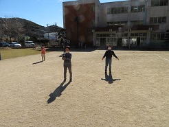 2月7日(月),1,2年の生活科で竹とんぼ遊びを行いました。初めはなかなかうまく飛びませんでしたが、練習していくうちに上手に飛ばせることができるようになり、子どもたちはとても楽しそうでした。