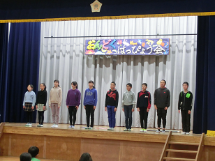 12月4日(金)に音読発表会を行いました。5年生を中心とした力強い全校音読「おまつり」をはじめとして、1,2年「ごろあわせ」、3,4年「ごんぎつね」、5年「江戸のこわい話」、6年「生きる」を各学年が工夫を凝らして発表しました。保護者の皆様、地域の皆様にも子どもたちの成長をご覧いただくことができました。