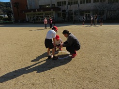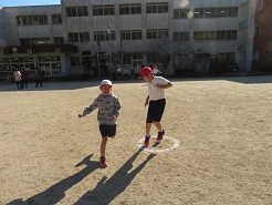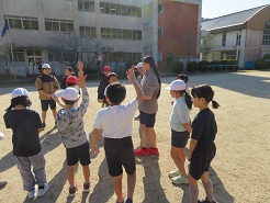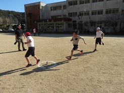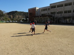1月16日(金)昼休み、全校遊びを行いました。今日の遊びは「缶蹴り」です。気持ちの良い青空の下、子どもたちはグランドを駆け回り思い切り楽しみました!