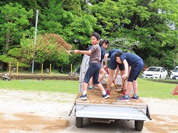 5月1日(木)気持ちよく運動ができるように、児童と職員が協力してグラウンド整備を行いました。子どもたちは、重い砂をスコップで持ち上げ、トンボを使って砂を均等にならしたり、ケガなく安全に活動できるように石を拾ったりと、一生懸命作業しました。中には、短い昼休みにも自主的に作業を続けてくれる子もいました。学校を大切に思う気持ちやみんなのためにと行動する優しさが伝わってきました。