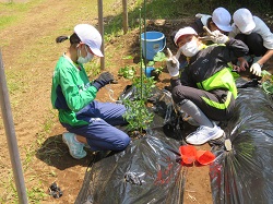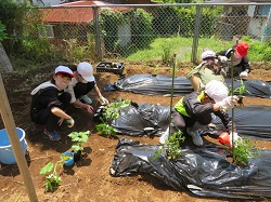 5月19日(木)5年生の総合学習で,トマト・きゅうり・とうもろこしの苗植えをしました。おいしい野菜が育つように,これからお世話を頑張りましょう!夏の収穫がとっても楽しみですね。