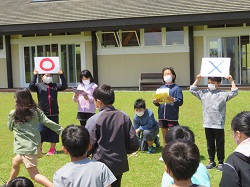 まず1年生を迎える会を行いました。6年生の代表児童による歓迎の言葉から始まり,1年生は一生懸命描いた絵と共に,とっても上手な自己紹介ができました。その後,〇✕クイズ,なぞなぞ,じゃんけん列車のレクを行い,とても盛り上がりました。お昼は各学年でおいしいお弁当を食べました。午後からはなかよし班に分かれ,鬼ごっこやだるまさんが転んだなど,6年生が考えた遊びを全力で楽しみました。