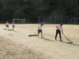5月10日(月)6校時に委員会活動を行いました。体育委員会と整備委員会では、グラウンド整備を一生懸命に行いました。陸上大会や運動会に向けて、みんなで力を合わせて頑張っています。