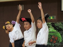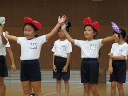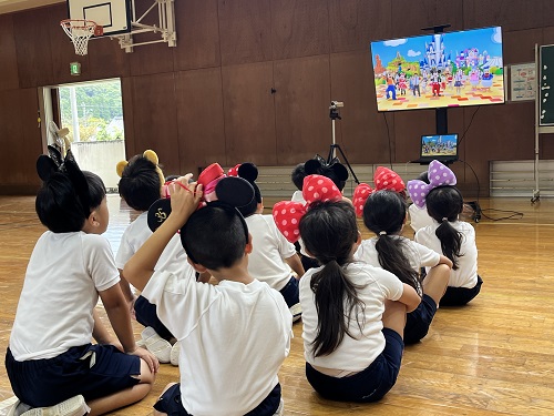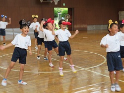 令和5年10月4日(水)の5時間目に1~3年生で、ディズニーのカチューシャをつけて、可愛く元気にジャンボリミッキーを踊りました。初めて踊る子が多かったですが、すぐに振り付けを覚えていました。