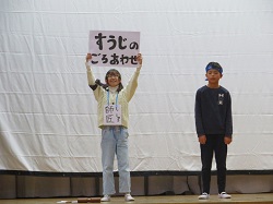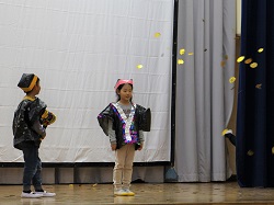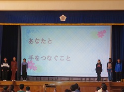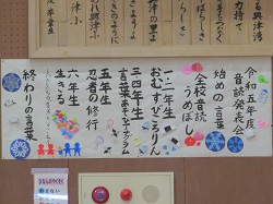 令和5年12月8日(金)の4校時に学校公開、5校時に音読発表会を実施しました。音読発表会では、全校音読(うめぼし)と学年発表(1・2年:おむすびころりん、3・4年:言葉遊びアナグラム、5年:忍者の修行、6年:生きる)を行いました。各学年人数が少ないため、一人一人覚える台詞が多い中でしたが、子供たちは堂々と発表することができました。