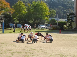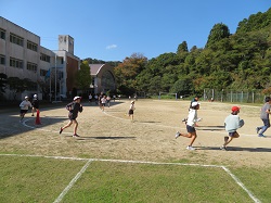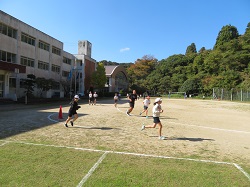 12月1日に行われる砂浜マラソン大会に向けて、子どもたちは一生懸命校内マラソンを頑張っています。準備体操を各学年で行った後、1~4年生はトラックコース、5・6年生はトラックの外を走りました。