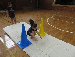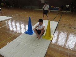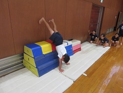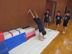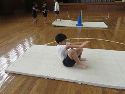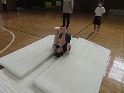 10月23日(木)5校時、1,3,4年体育でマット遊び・マット運動の学習を行いました。先生が模範演技を見せた後、子どもたちは、逆立ち、前転、後転の中から自分の挑戦したい技を選んで取り組みました。工夫された場を使いながら、一生懸命に練習しました。