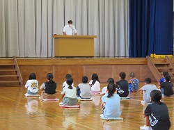 7月20日(水)1学期の終業式を行いました。夏休みの過ごし方(帰る時間や自転車の乗り方,不審者対応,感染対策等)をクイズ形式で確認しました。その後,よい歯のコンクールの表彰を行いました。受賞した皆さんおめでとうございます!