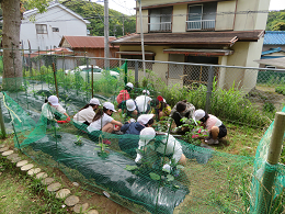5月12日(水)、3,4年生は草取りを行いました。自分たちで植えた苗が大きく育つように、一生懸命に作業しました。