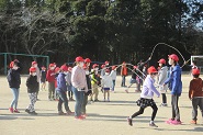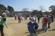 中止が続いてきたわかぎっ子タイムの長縄跳びを久しぶりに行いました。わかぎっ子タイムは縦割り班で活動します。低学年に優しく声をかけ、跳ぶタイミングを教えてあげたり、跳びやすいように丁寧に縄を回したりする高学年の姿が見られました。強い風が吹く中、記録更新を目指しがんばりました。
