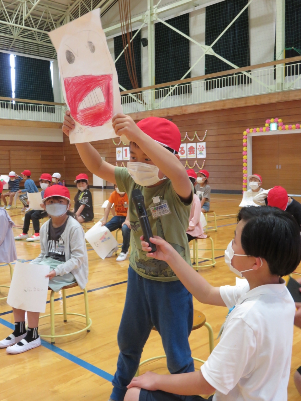 1年生が入学して、早2週間が経ちました。本日は6年生のみなさんが、もっと親交を深められるよう、〇✖クイズを企画してくれました。