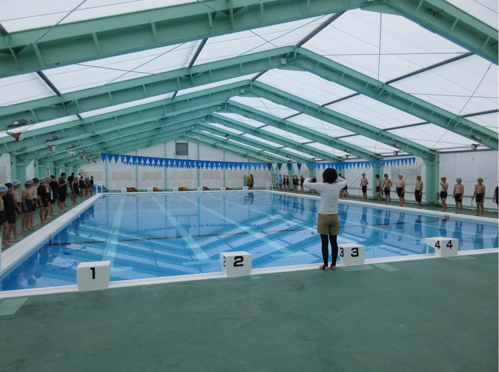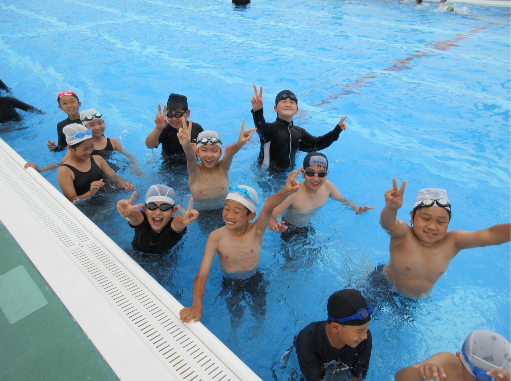 水に慣れる練習から始め、各々の能力に合わせた練習を進めています。