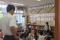 毎週水曜日に「読夢の会」の皆さんが1~3年生に読み聞かせに来てくださっています。その読み聞かせの様子を大多喜高校の生徒さんが見学に来られました。2学期に生徒さん達も、子ども達に読み聞かせをしてくださる予定です。どんなお話を読んでくださるのか、今からとっても楽しみです。読書好きの子どもがまた増えそうです。