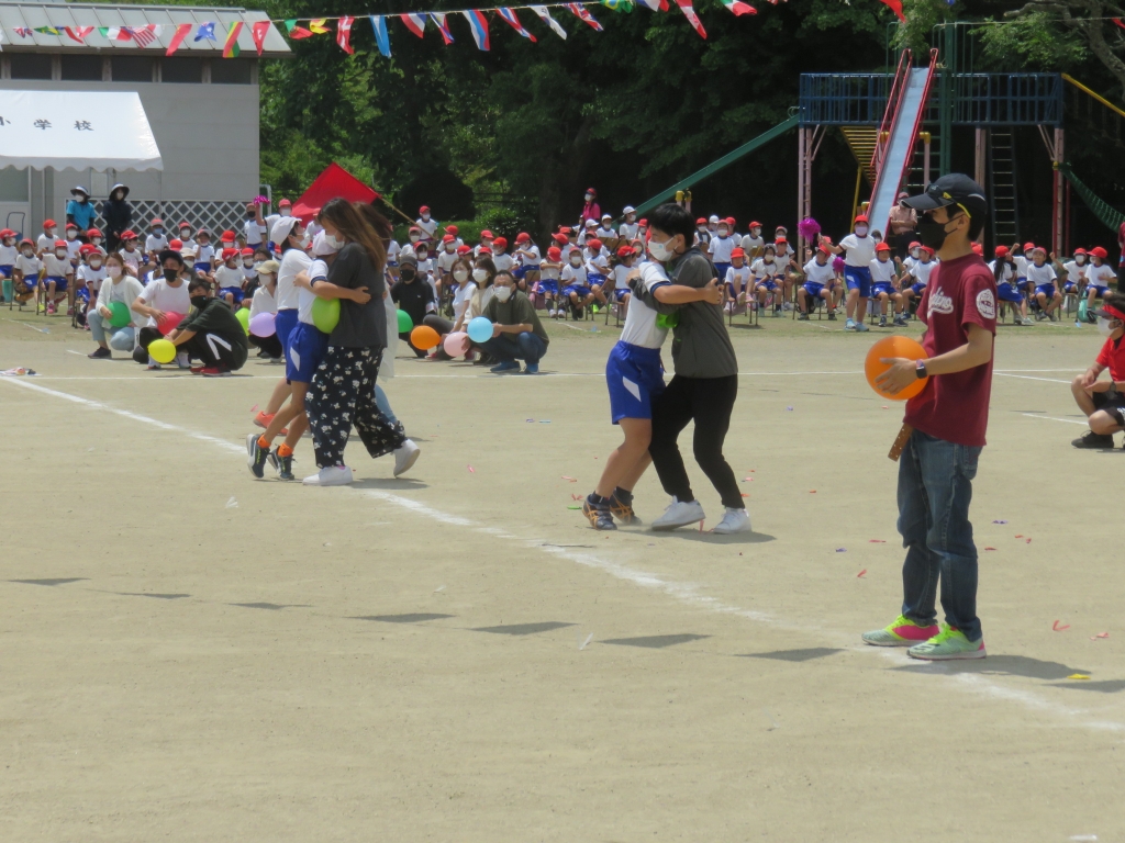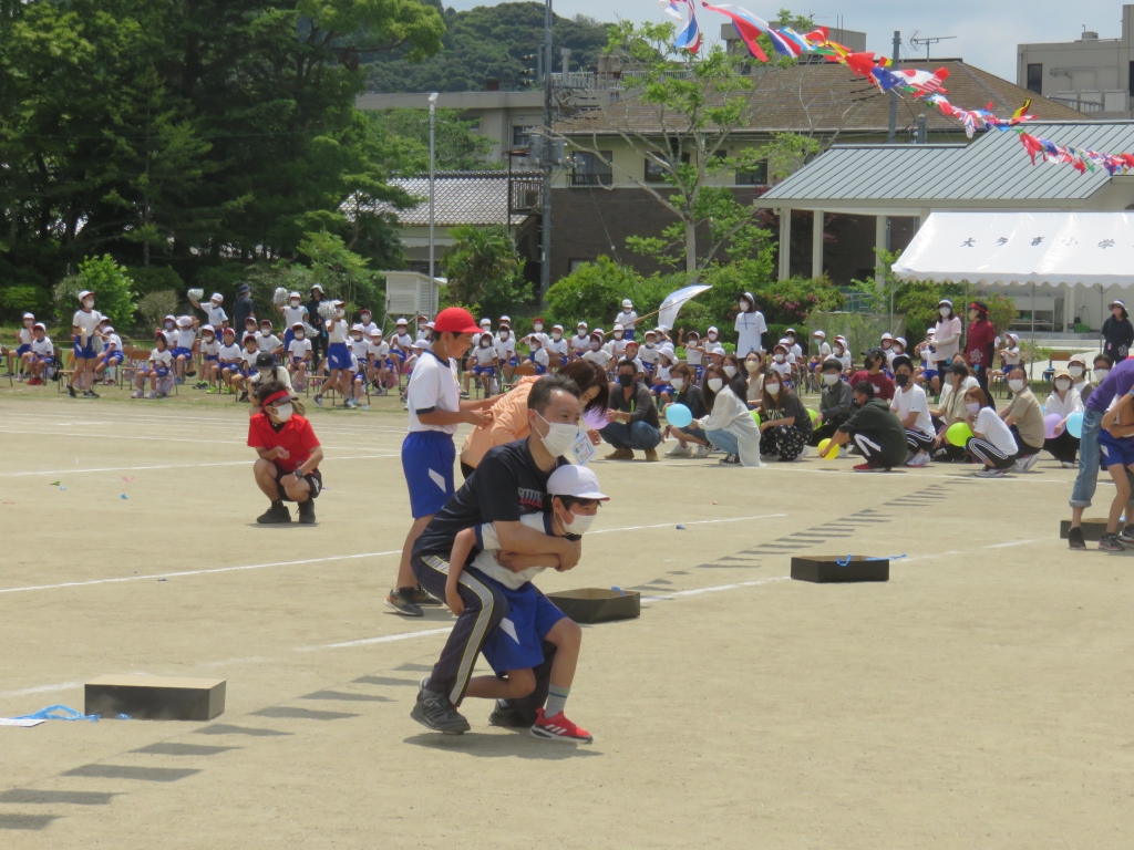 6年生の親子競技では、親子で力を合わせて挑みました。